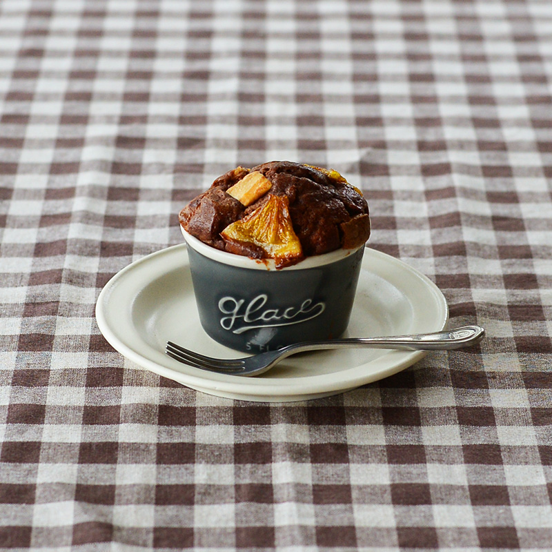 深い色のカップで焼き上げれば、季節を感じる装いに。