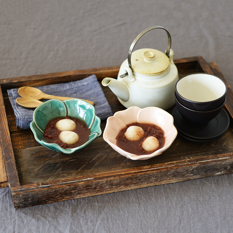 冬を知らせるサザンカみたいな小鉢で、おやつもすっかり冬本番。