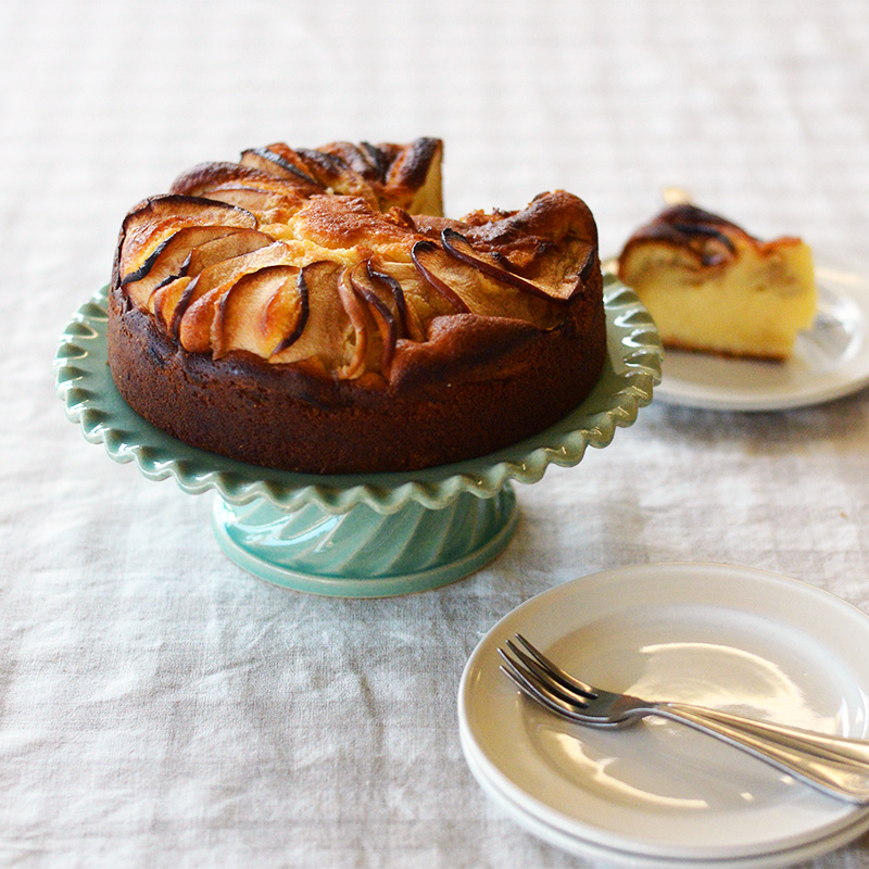 スライスしたリンゴと一緒に焼いたホールケーキ。