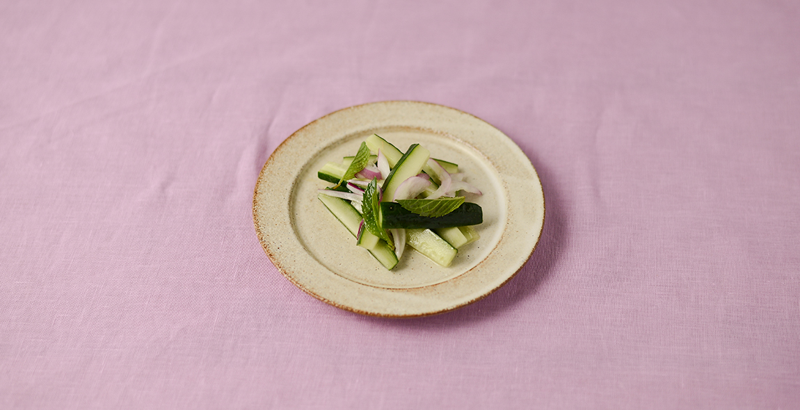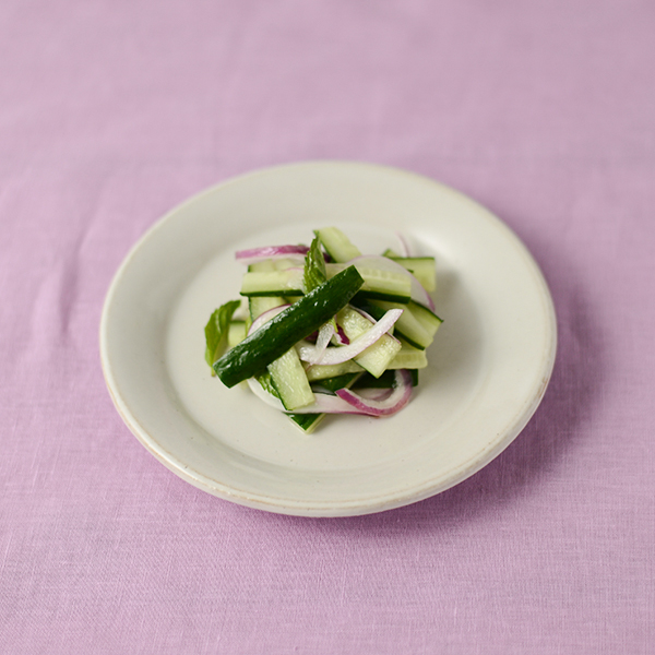 1.きゅうりは長さを3等分して縦半分に切り薄切りにする。紫玉ねぎは薄切りにする。
