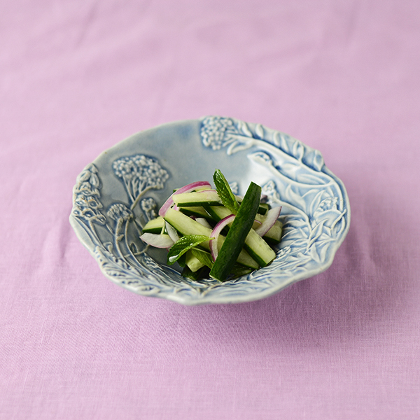 淡いブルーのボウルは涼しげで上品に仕上がります。