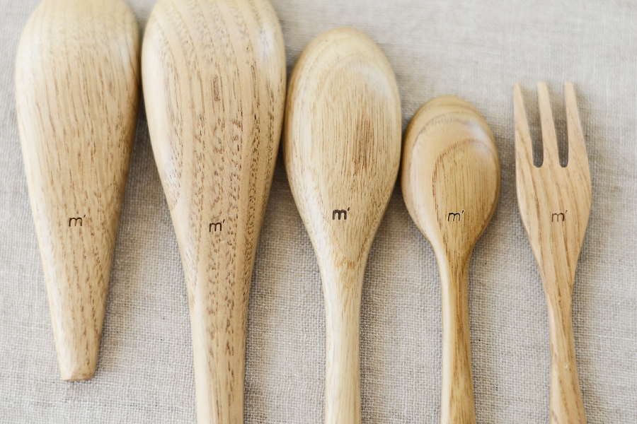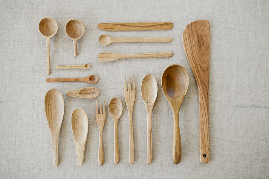 ラインナップは、定番のスプーンやフォークはもちろん、へらやお玉といった調理道具、茶匙やスパイススプーンのような小さなアイテムまで、なんと約15種類以上。