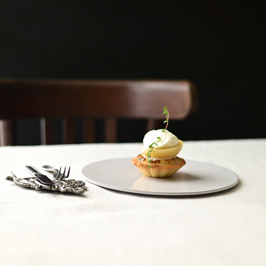 φ235mmのプレートは、前菜やデザート、チーズ盛り、小さなワンプレートやカジュアルなメインプレートとして幅広く活躍します。