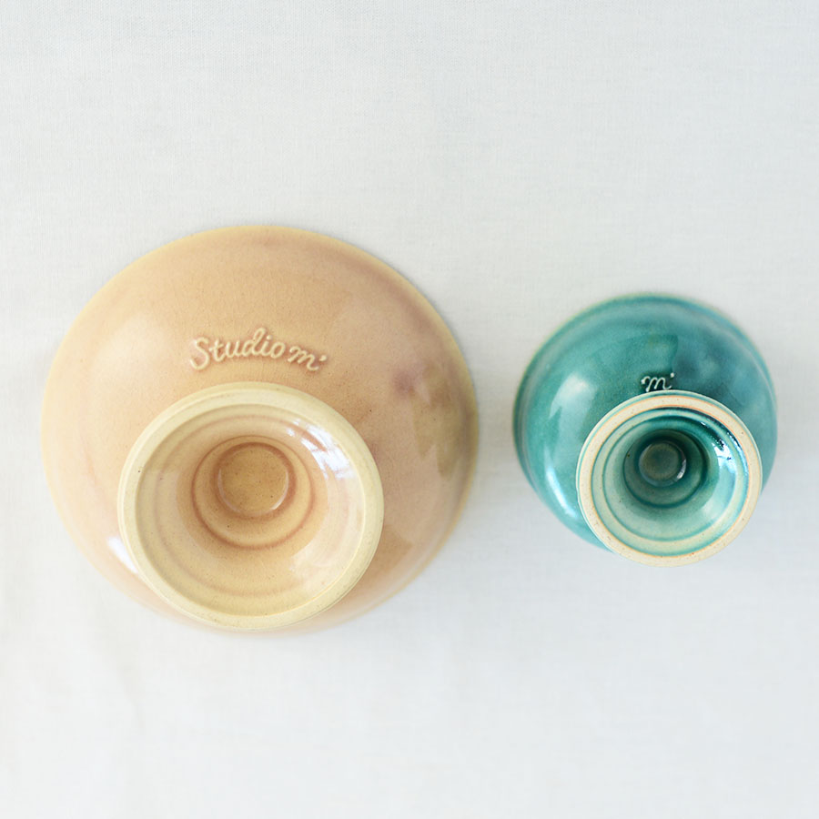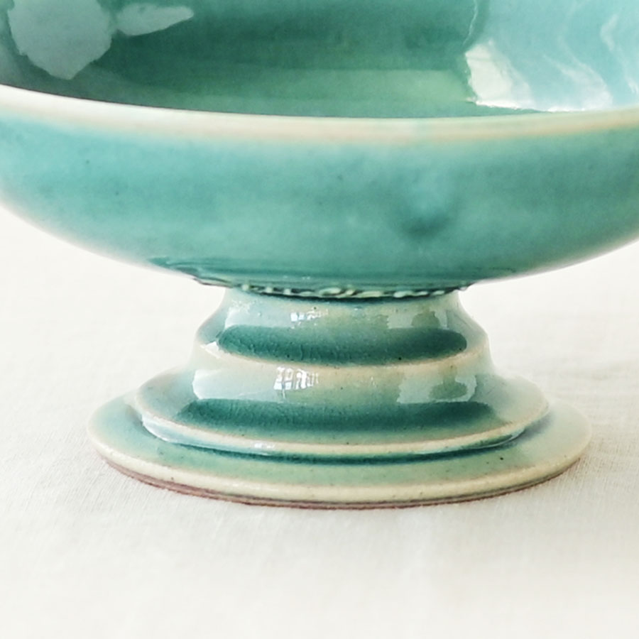 台座部分には控えめな段差を装飾として施し、釉薬による色の変化を引き立てています。