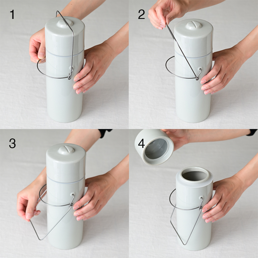 蓋の留め具には、このパスタキャニスターのために作られた、アンティークを思わせる昔ながらの仕組みの金具をあしらいました。