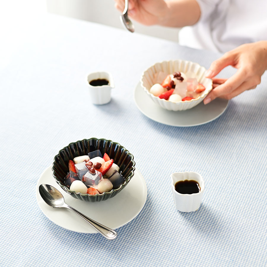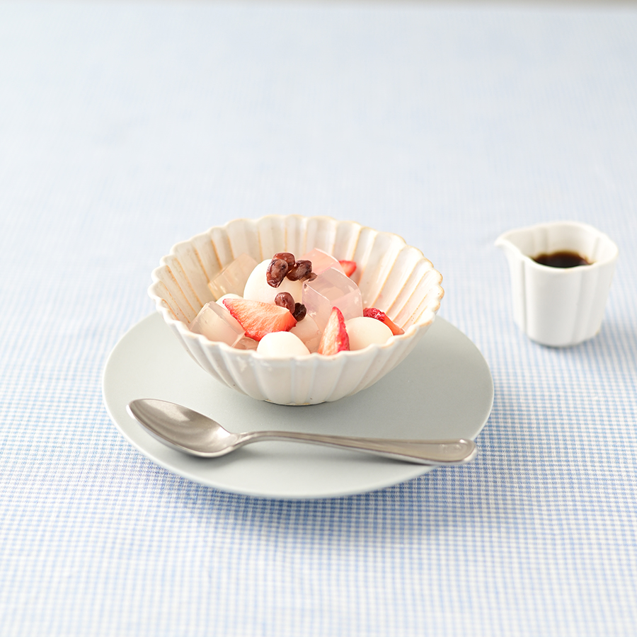 和のデザートとの相性もよく、いちごのあんみつを盛り付けると上品な雰囲気に仕上がります。