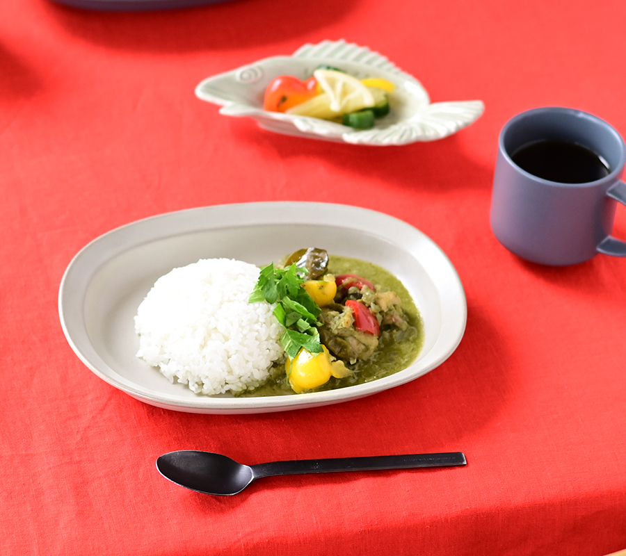 カレーやガパオライスなどの一品料理をたっぷりと盛り付けたり、ラタトゥイユや炒めものをのせて食卓の中央に置いてシェアするうつわとしても活躍します。