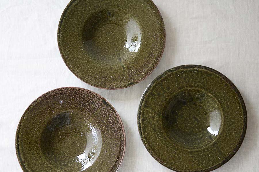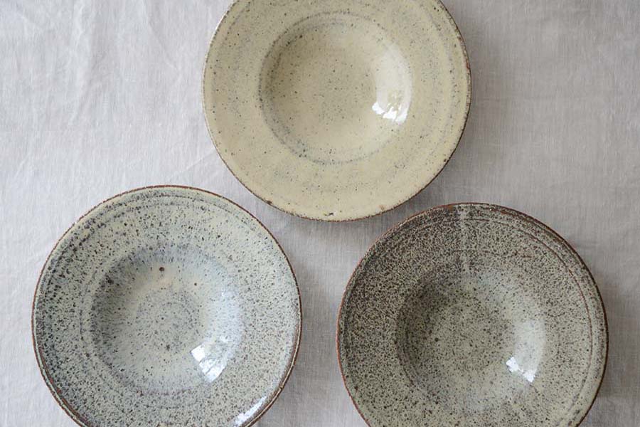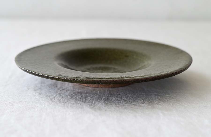 日本の古典的な釉薬と、西洋的なリム皿形状の組み合わせが、