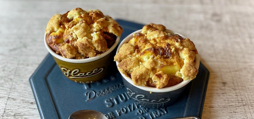 りんごをキャラメリゼをして、酸味と甘味、苦みを加え、奥深い味のマフィンに。クリームチーズとの相性がばっちりです。サクサクのクランブルものせて、食べごたえのあるマフィンです。