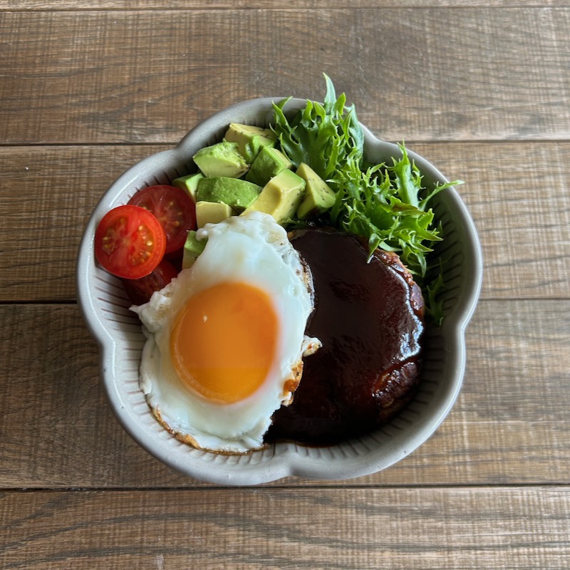 野菜と一緒に乗せたら、美味しいロコモコ丼の完成です!