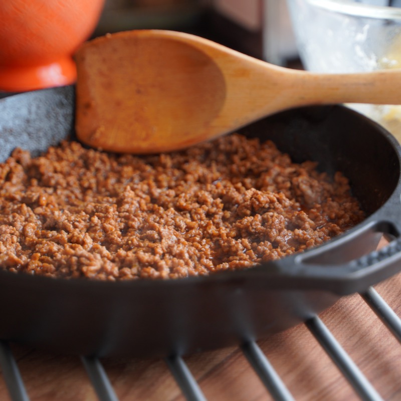 豚ミンチと香味野菜でしっかり炒めたらすぐできる