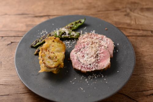 低音でじっくり火をいれたイタリア伝統の焼きハム。
