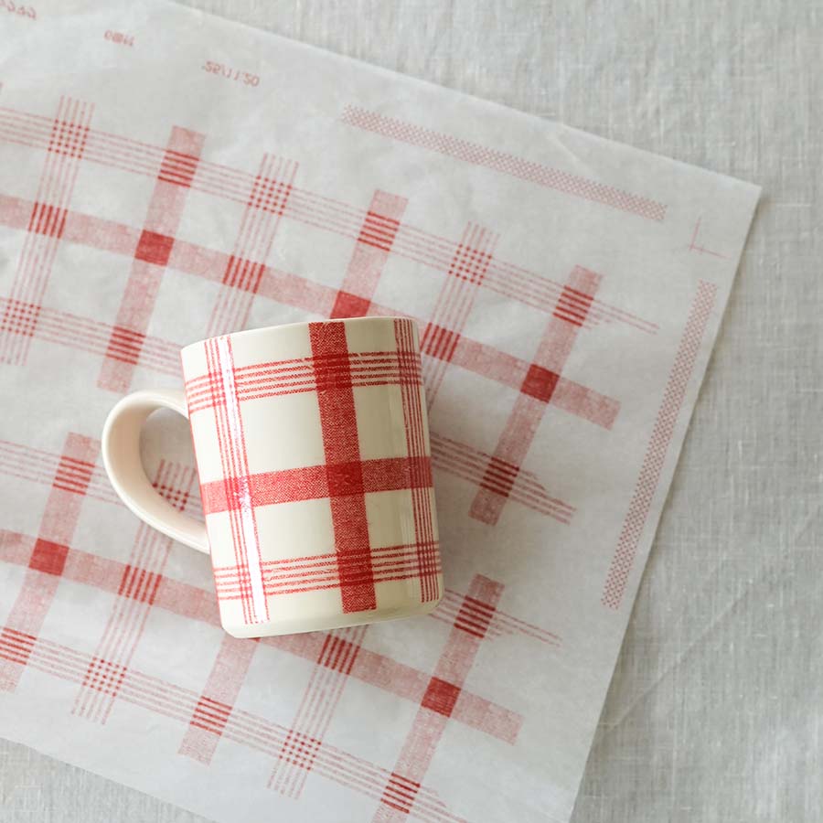 リネンシリーズのチェック柄を施した「ファブリックマグ メイ」をご紹介します。