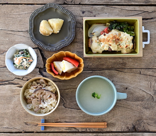 椎茸出汁で炊いた蓮根の食感が楽しめるご飯