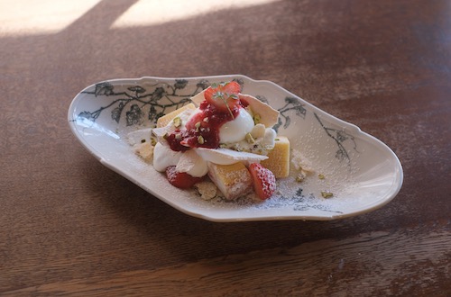 フレッシュの苺とスパイスがほのかに香る苺のコンポートを重ねました。