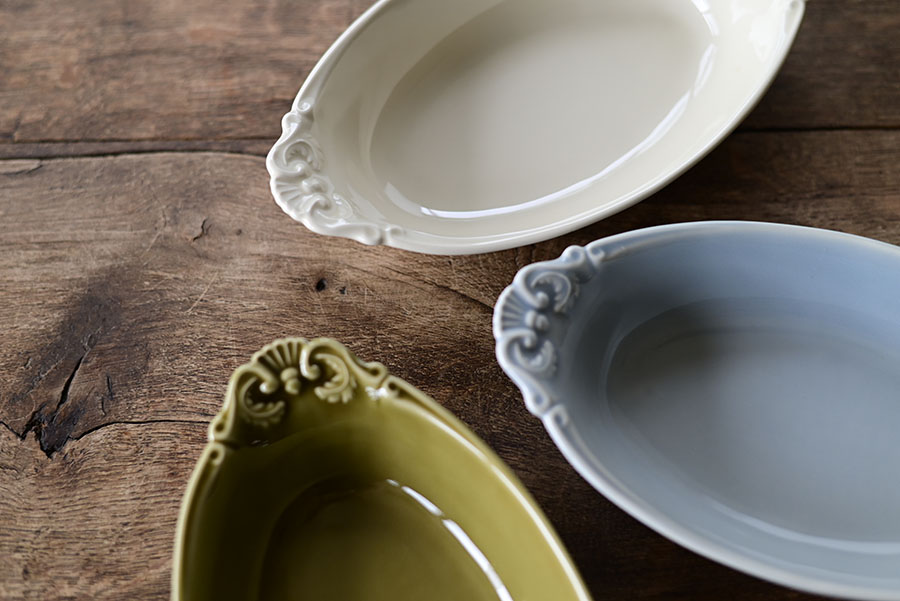 アンティークの雰囲気を感じさせる磁器素材で、色は3色展開。