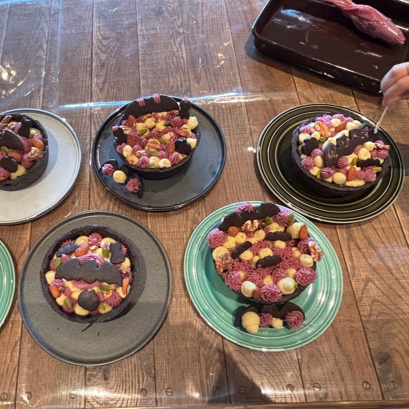 毎月開催の小学生の講座、今月は「さつまいものタルト(ハロウィーン風)」