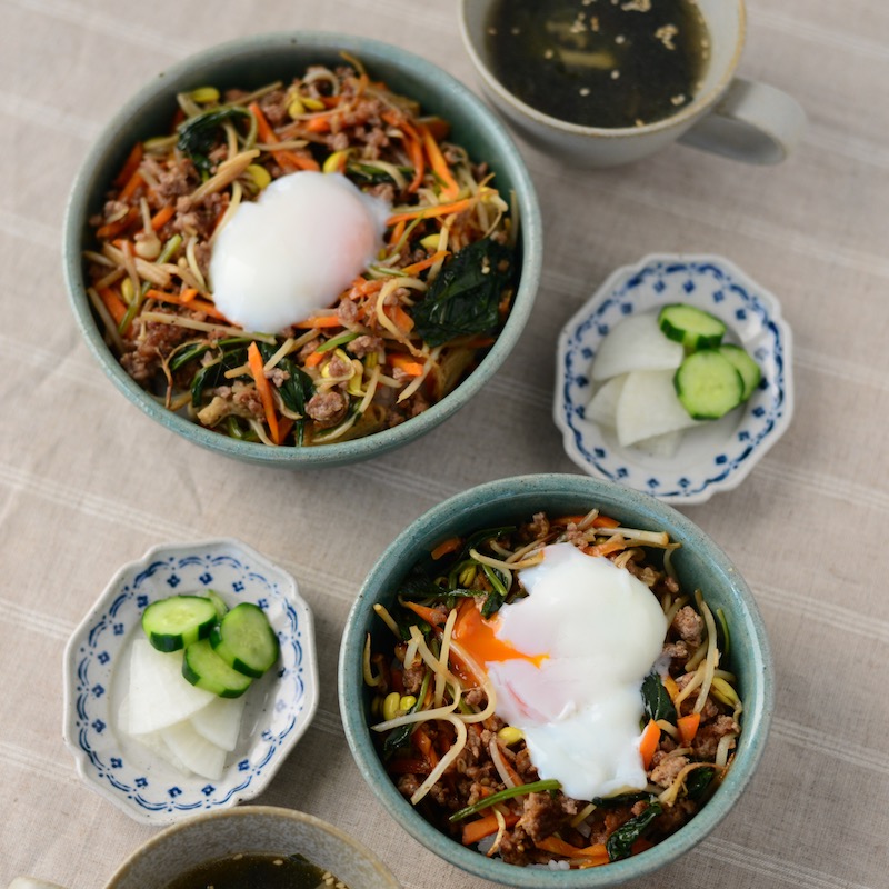 【ビビンバ】【水キムチ】【わかめスープ】を作ります。
