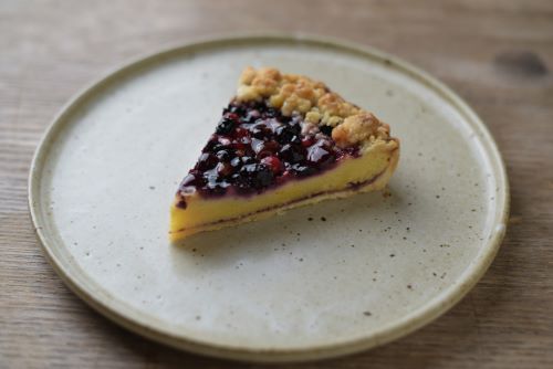 仕上げにブラックペッパーを重ねた、三層仕立てのタルトです。