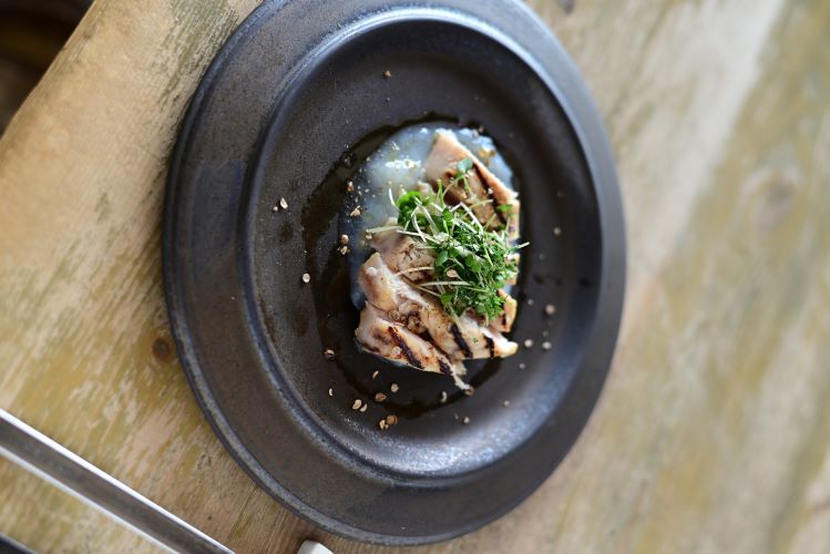 白ワインビネガーで軽くマリネし、低温でしっとりと仕上げました。