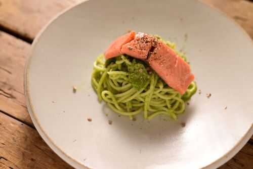 『セロリのジェノベーゼ サーモンのミキュイ添え(+100円)』