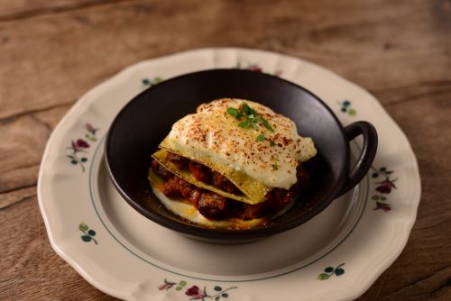 牛乳とブロードで仕上げた、なめらかなベシャメルソースが味わいを引き立てます。