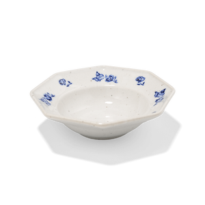 - こげ茶のストライプクロスが空間を引き締め、白とブルーの柄の器の表情をより際立たせるクラシカルなテーブル。小花柄の絵付けと柔らかなフォルムが、穏やかな時間の流...