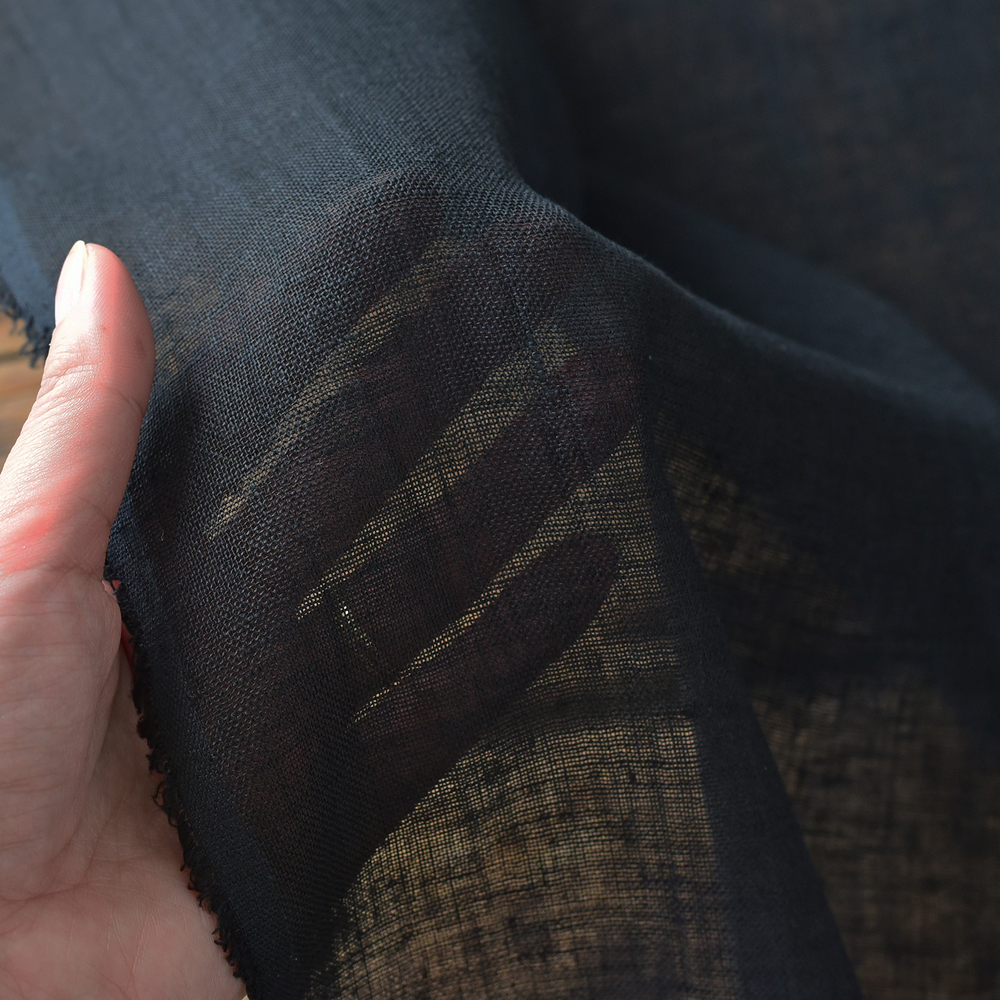 ふぞろいな太さの糸を使って表情のある素朴な風合いに仕上げています。目の粗めなざっくりとした織りは、透け感があり涼しげな生地なので、ブラウスやスカートなどのお洋服に向いています。速乾性があるのでディッシュクロスにもおすすめです。