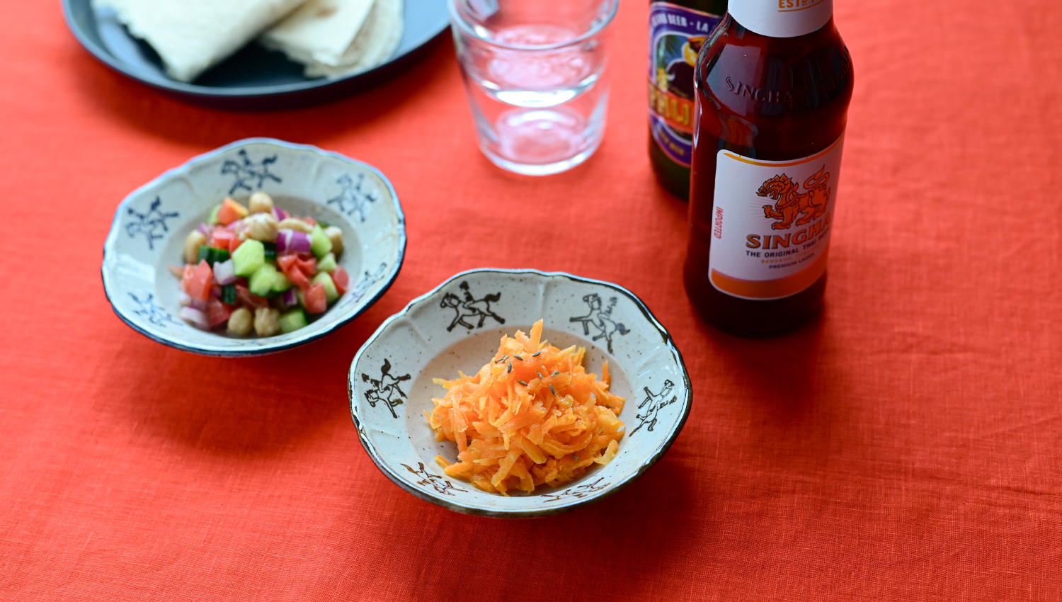 リネン生地とうつわのコーディネート