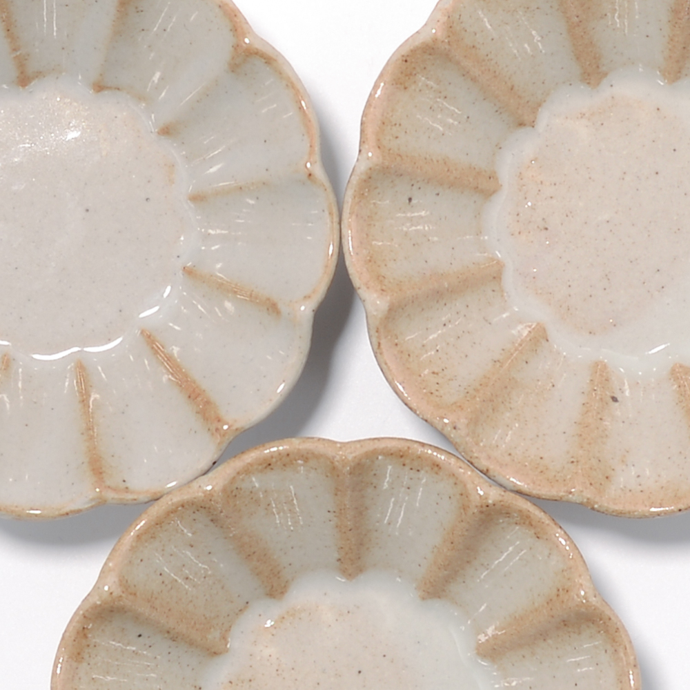 素地(土)の鉄の含有量によって赤茶色っぽくなっていたり、ベージュだったり。
