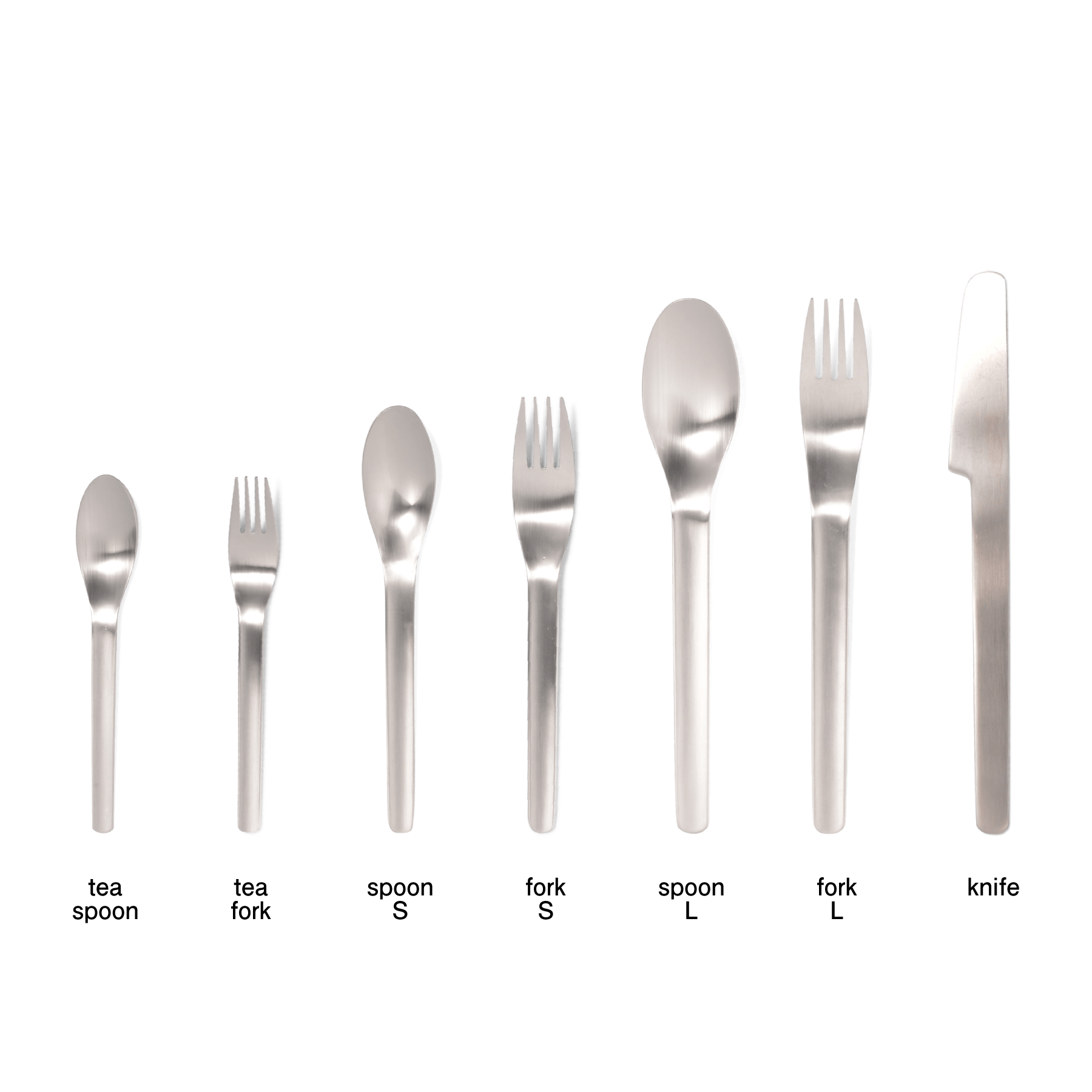 直線的でフラットなフォルムが特徴的なカトラリー。幅が狭く、浅めで食べやすさも考えられたスプーンは、なだらかな形がシンプルでありながらどこか柔らかさも感じられます。表面は一方向に細い線状の傷を付ける表面加工によりツヤのないマットな仕上がりで、キズなども目立ちにくくなっています。洋食器だけでなく、和食器に合わせても馴染むデザイン。食事からおやつの時間まで、毎日使いたいカトラリーです。 スプーンSは、大きすぎず小さすぎずの程よいサイズ感。お子様用に、ちょっとしたデザートを頂くときにもおすすめです。