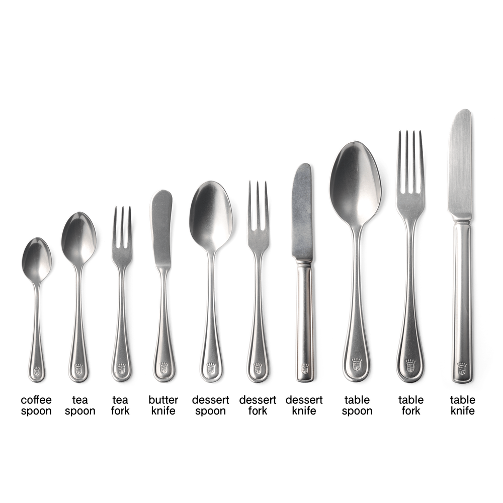 デザートフォーク、デザートスプーン、デザートナイフは、大きすぎず小回りのきく扱いやすいサイズ感。デザートはもちろん、果物や軽食、スープ、さらにナイフはベーコンや目玉焼きなどをサッと切るときにぴったりです。ひとそろえあるだけで、日常の食卓の使い勝手がぐっと良くなります。