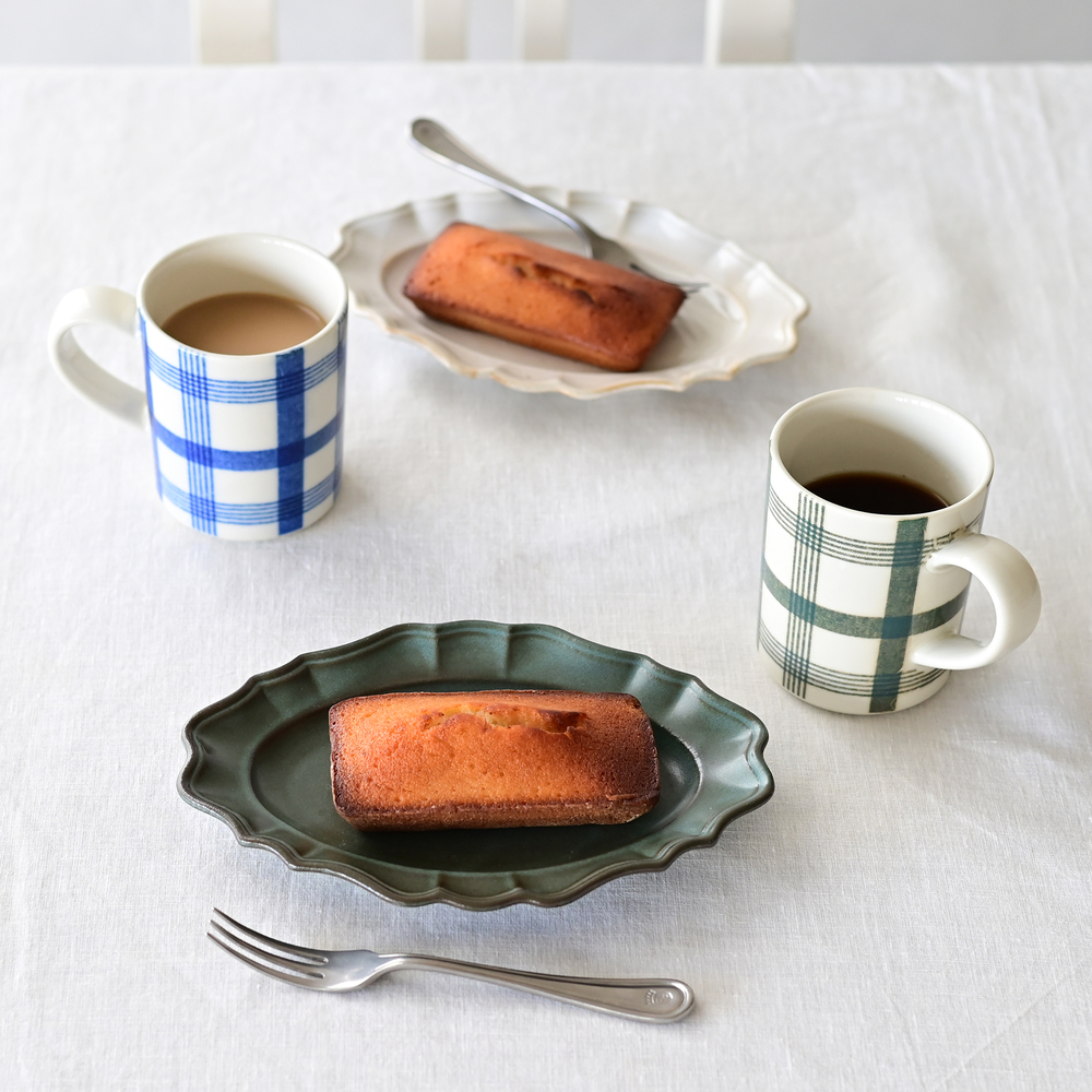 布の質感やチェックが生み出す軽快なリズムを、器の上に写し取りました。