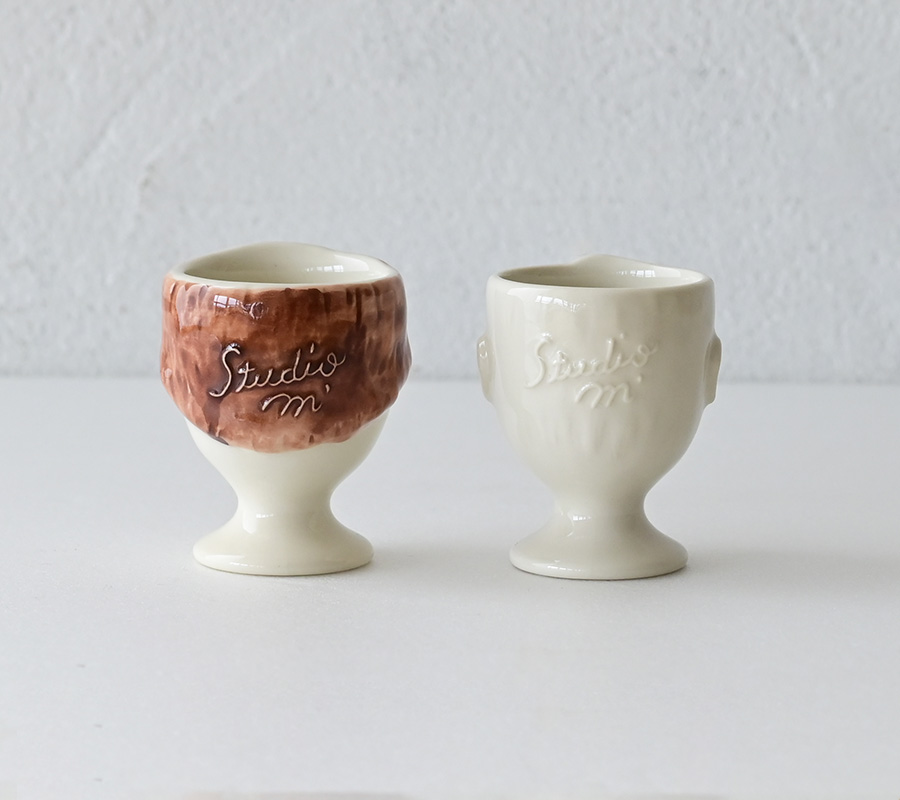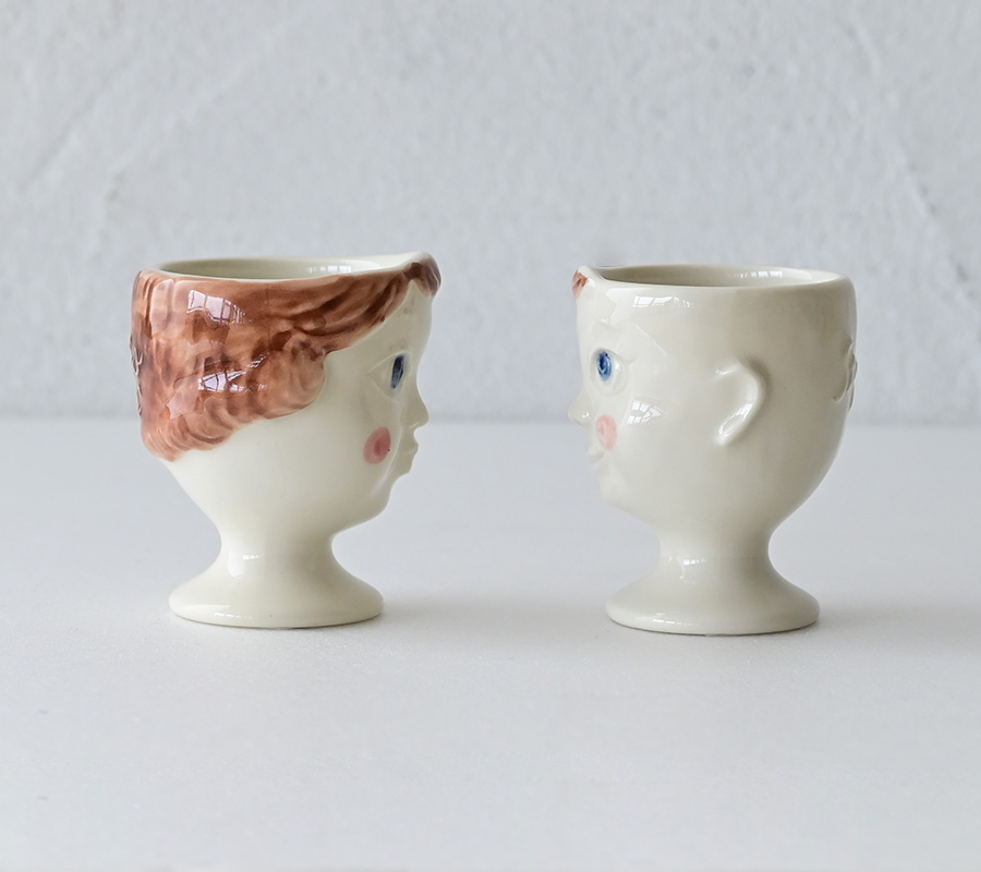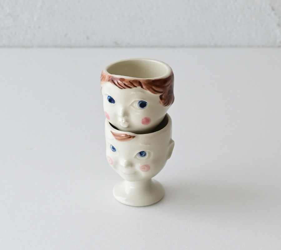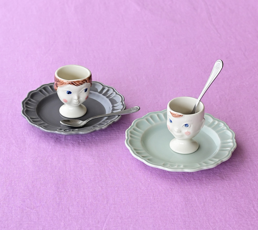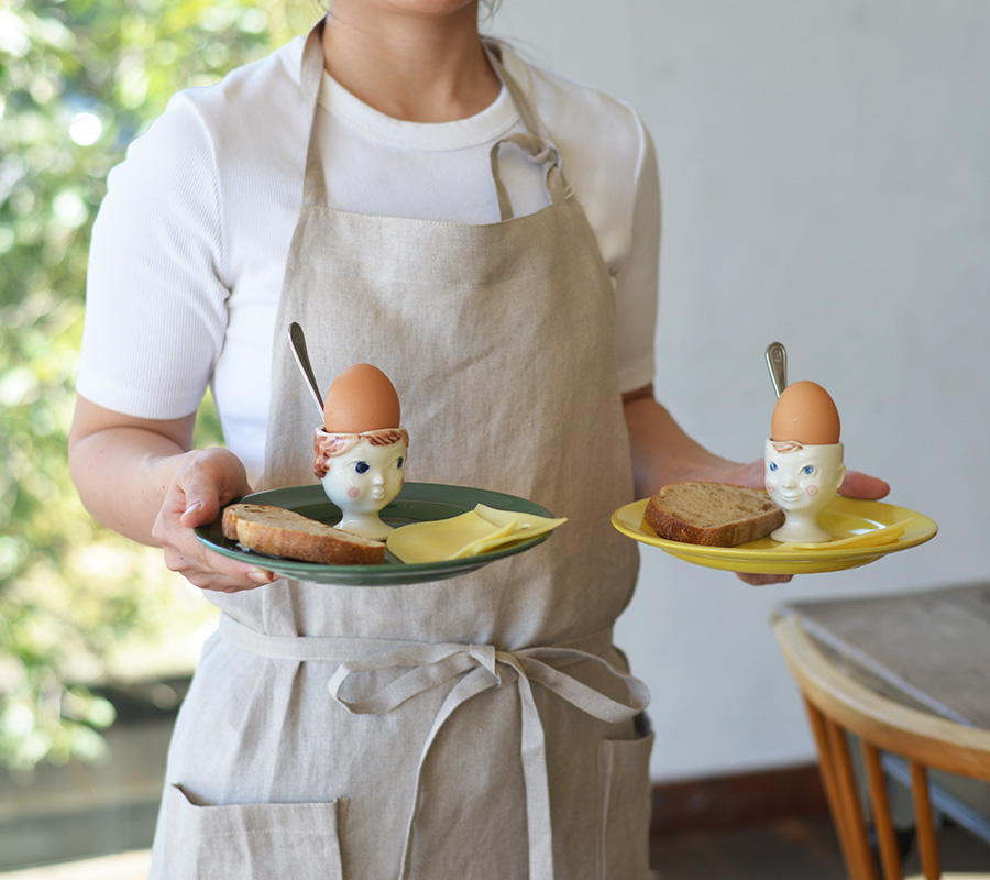 頭に卵をのせたその姿は、とても愛らしい。何か物語が始まりそうな食卓になります。