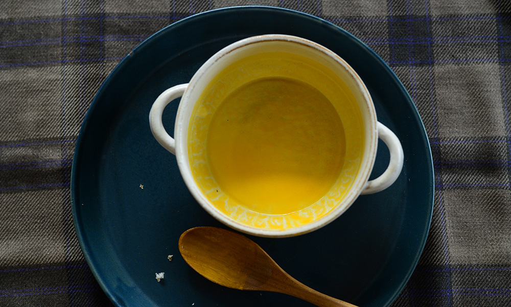 飲み終えたあと、器の底にうっすら残った黄色の名残。そのあたたかな色は、今日を心地よく始める合図のように思えます。整えることは、飾ることではなく、自分をいたわること。ヴルーテを手にした朝は、そんな気づきを静かに教えてくれる時間になりました。