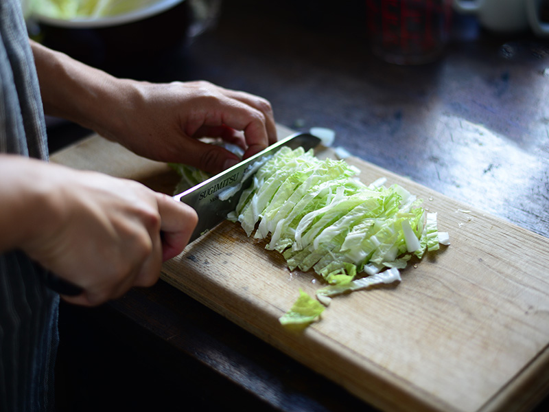白菜は千切りすると食感が良く、いくらでも食べられる。