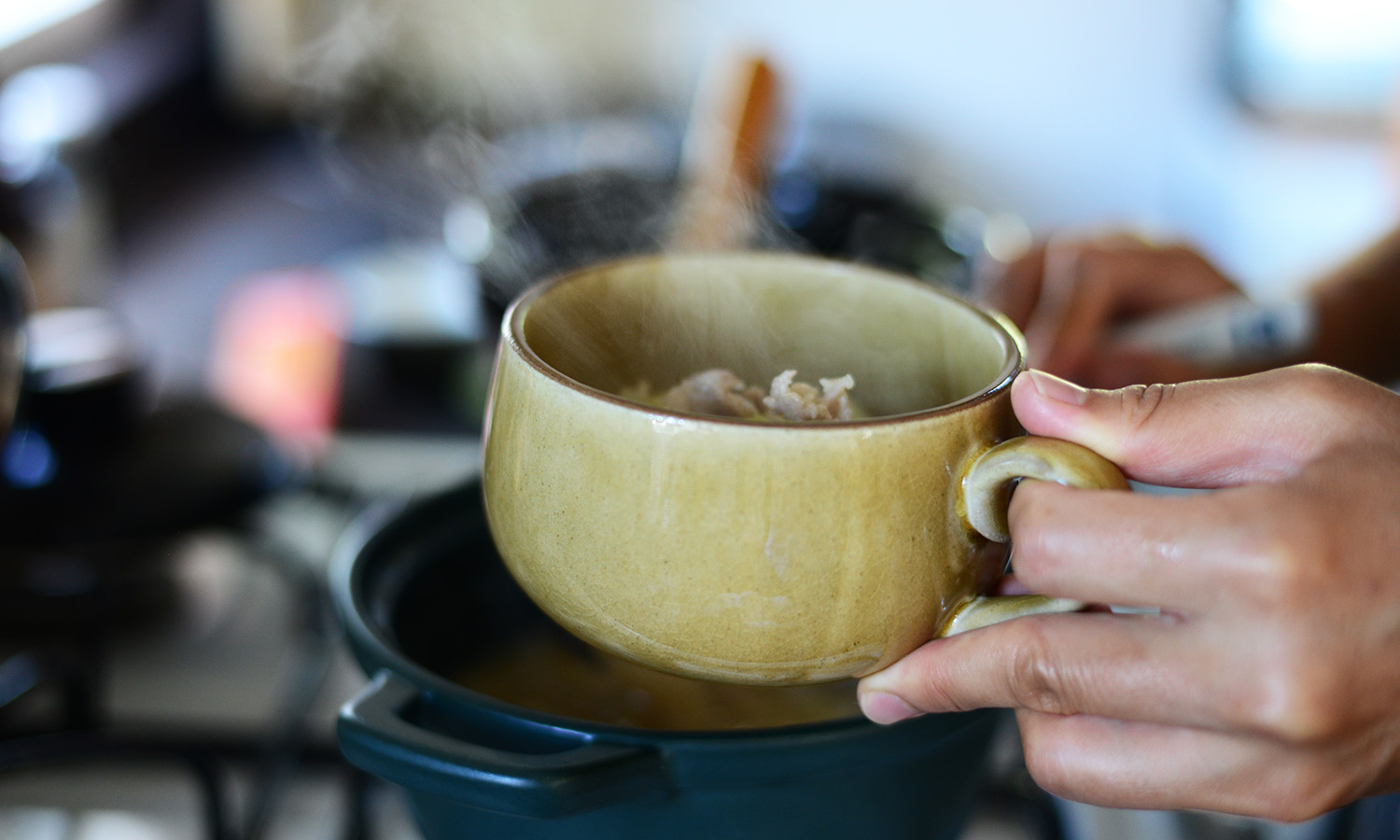 土鍋で作ると、遠赤外線効果で素材の味が引き出されて美味しくなる。