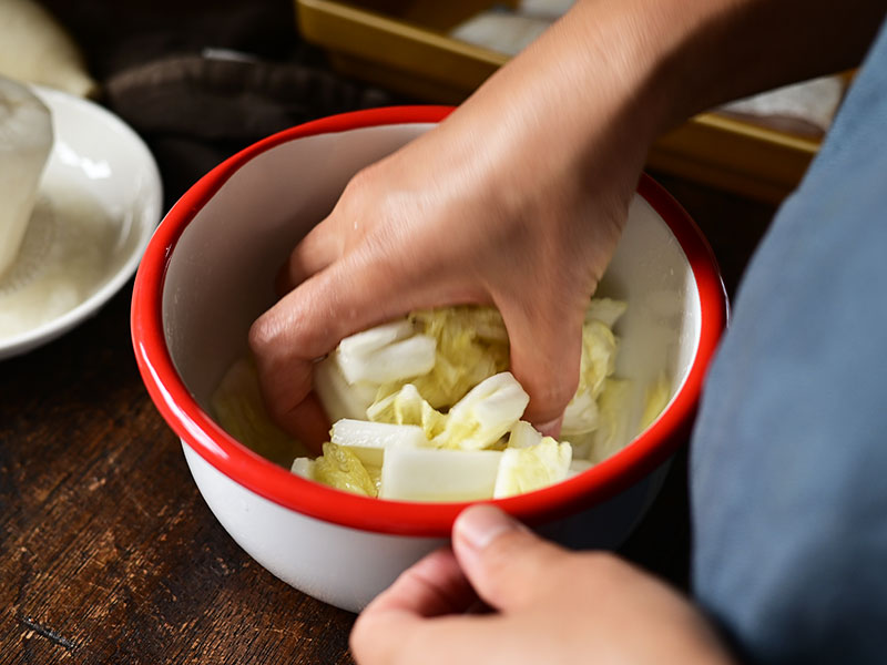 みずみずしい旬の白菜は即席漬けにして鍋料理の箸休めに。