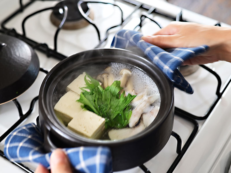 土鍋の保温効果で熱々が長く味わえるのが嬉しい。