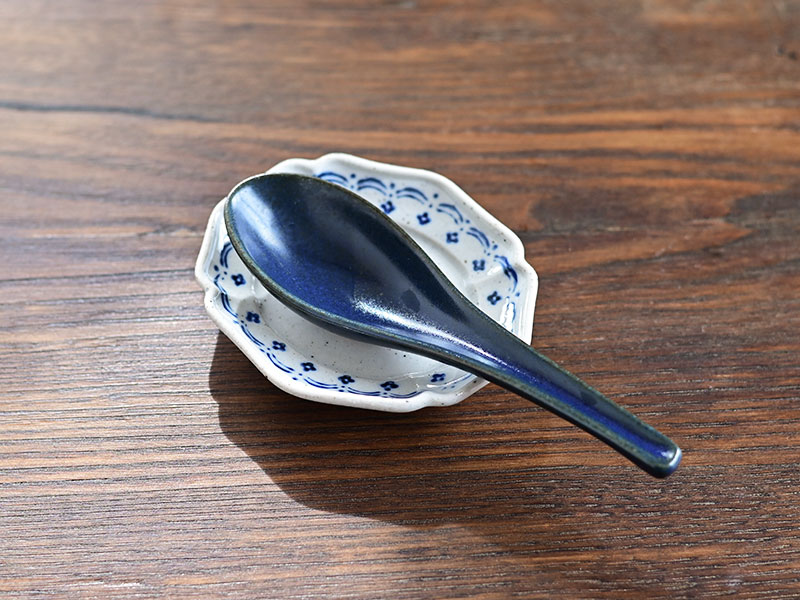 曲線がきれいな細身の陶製レンゲ。