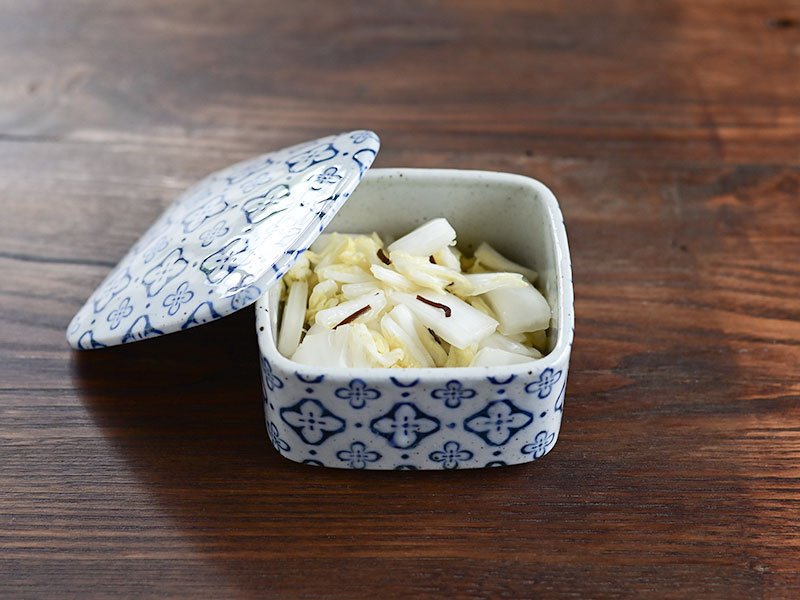 白菜の即席漬けを陶製の小さなお重に入れて。