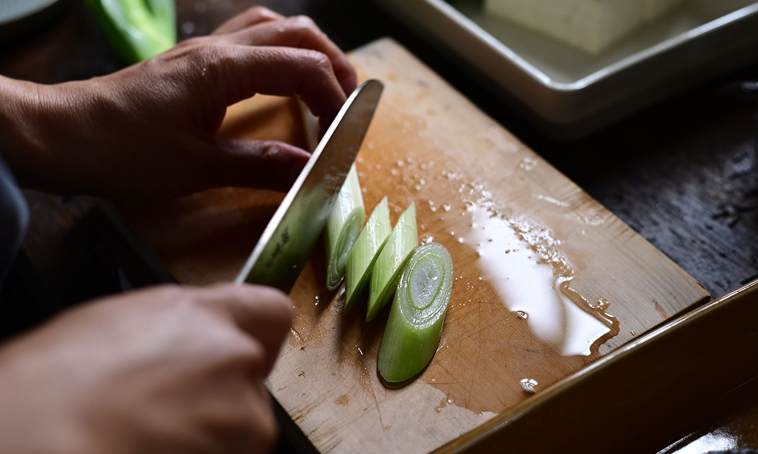 薬味用の形状の違う小さな器を並べて賑やかに。