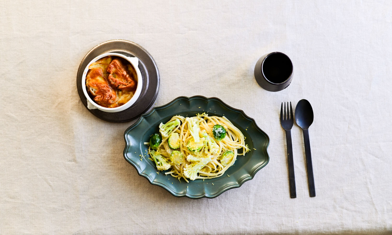 濃厚なスープには爽やかなパスタを合わせて。