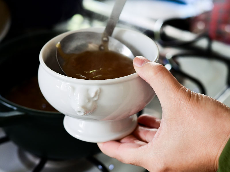 オニオングラタンスープの美味しさの決め手はアメ色玉ねぎ。