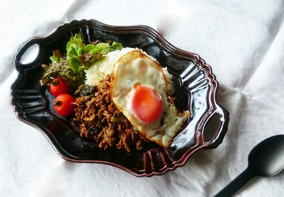 2020SS新商品 シャンテでやってみたかったワンプレートごはん。休日のお昼ごはんにガパオライスを作って盛り付けました。 取手が付いていると特別感があって、テーブル...