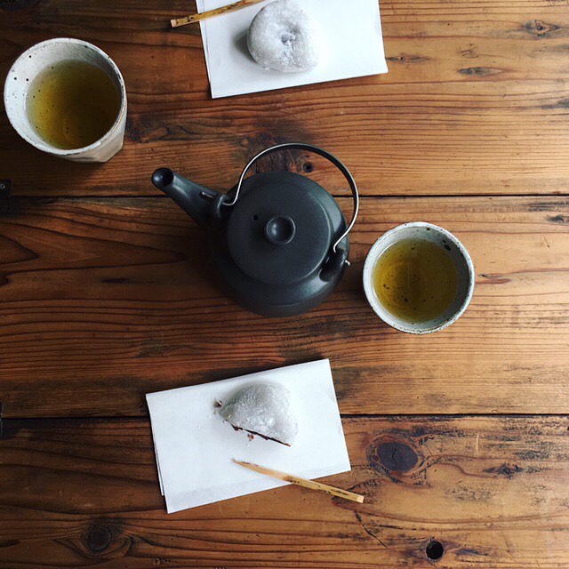 葉っぱの形をした抹茶といちご、カモミールの落雁。こっくりとした飴色のお皿に優しい色がポツポツと並んでる。大切なものを取り出すように、一粒ずつ口に運ぶ。