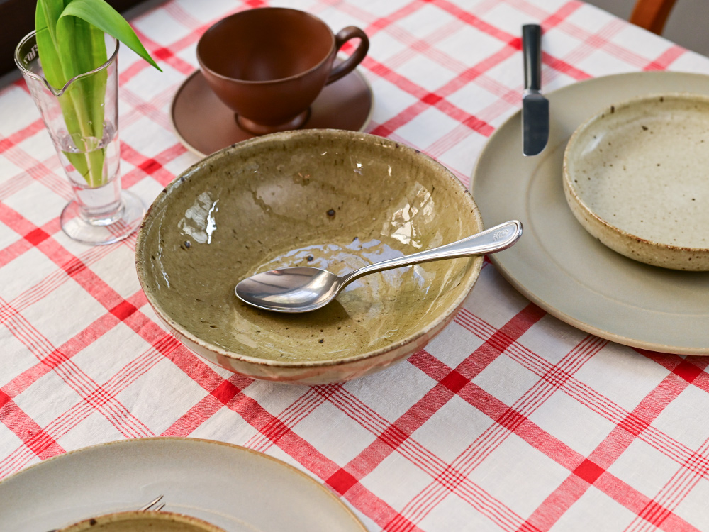 陶器の器に見られる鉄粉や焦げ感、釉薬のゆらぎといった表情は、素朴な料理に奥行きを添え、