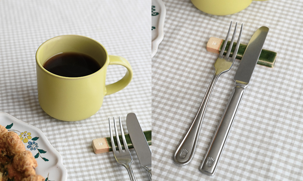 カトラリーはシャルパンテのデザートナイフとデザートフォーク。200サイズのプレートにちょうどいいサイズ感です。シャルパンテはテーブルを上品に整えてくれる存在。手に伝わる重厚感が心地よく、“おうちランチ”を上品に仕上げてくれます。