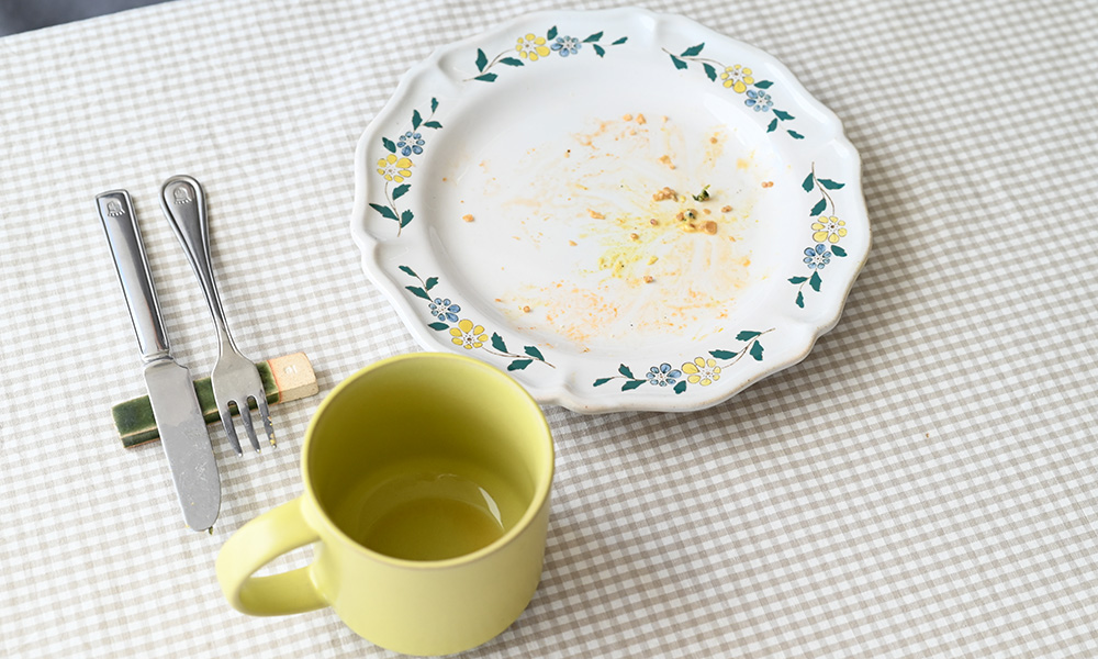 テイクアウトの紙容器から器へ移す――