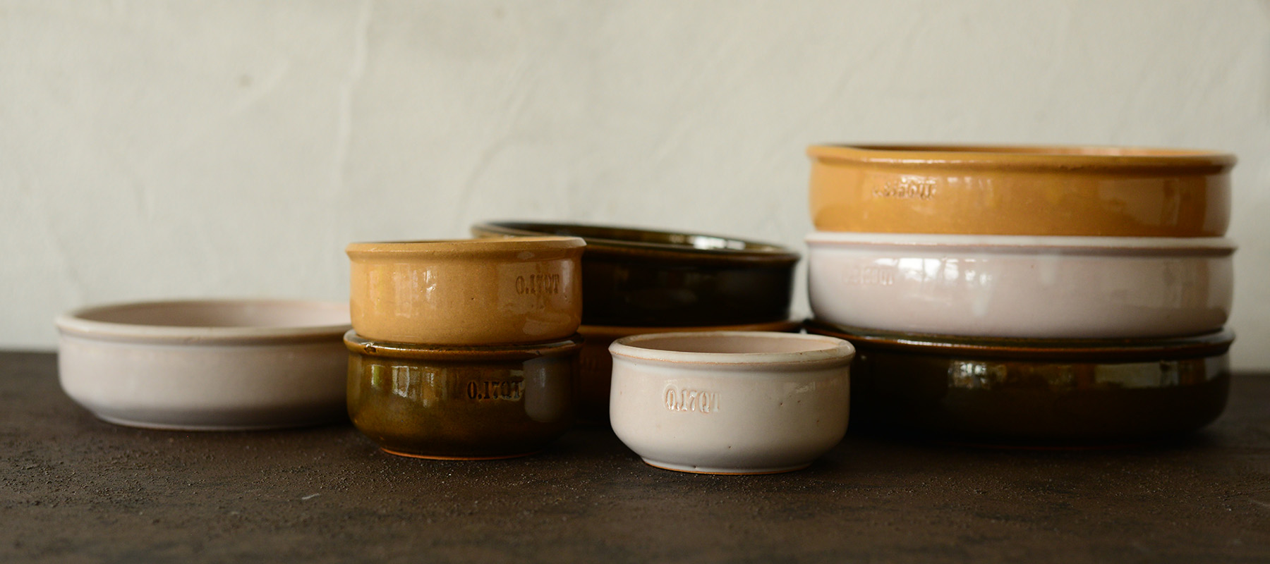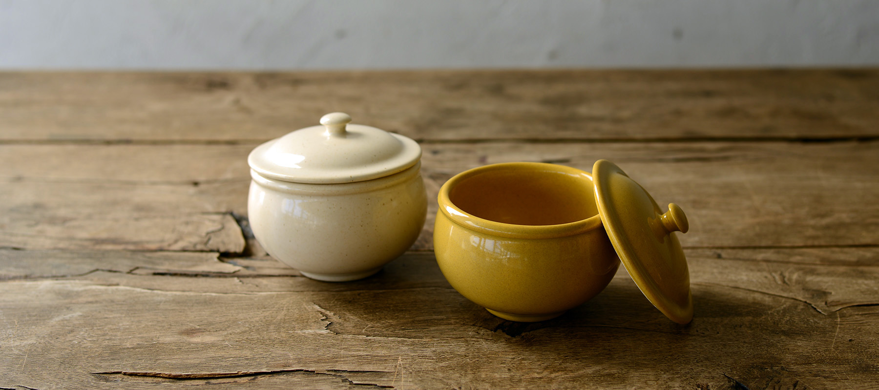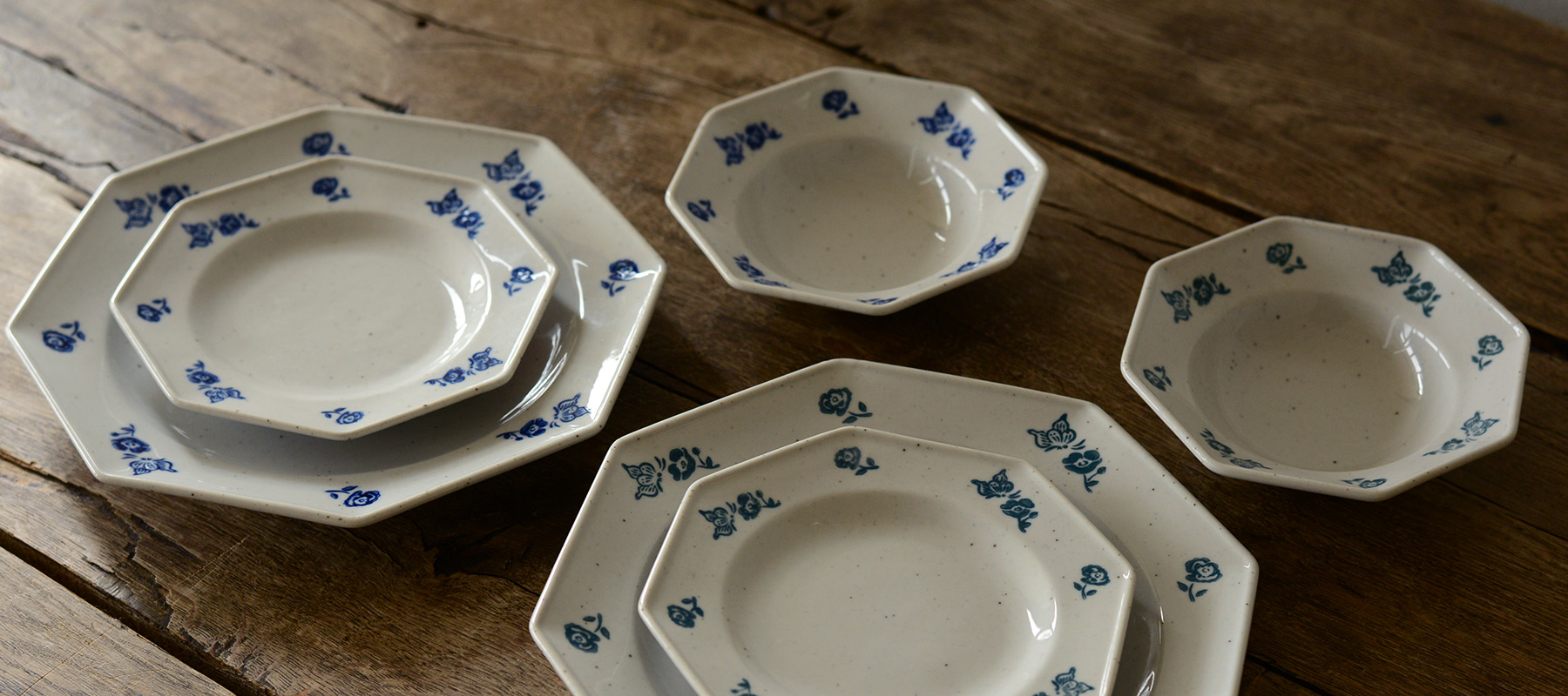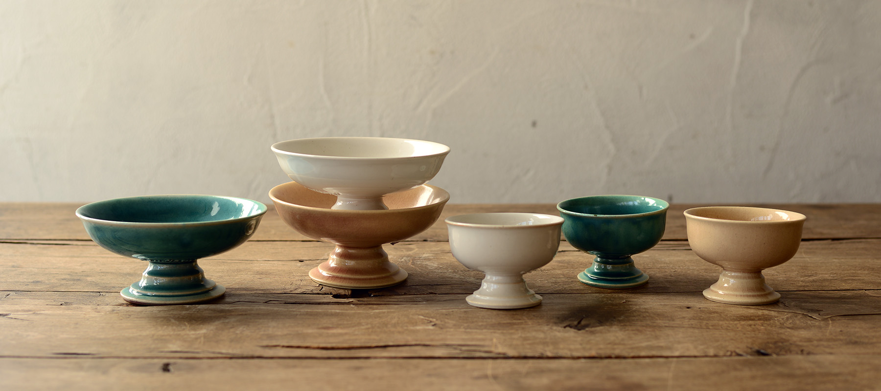 縁起のいい飯碗を、という思いから企画。ミッレはイタリア語で千、たくさんの。扇子のようなたくさんの折り目が無限に続くようなイメージで、重なった縁の装飾と曲線が見ていて飽きず、食卓をパッと華やかにしてくれる飯碗です。どの色もふんわりと霜が降りたような斑入りの釉薬を施し、奥行きのある表情を醸し出しています。